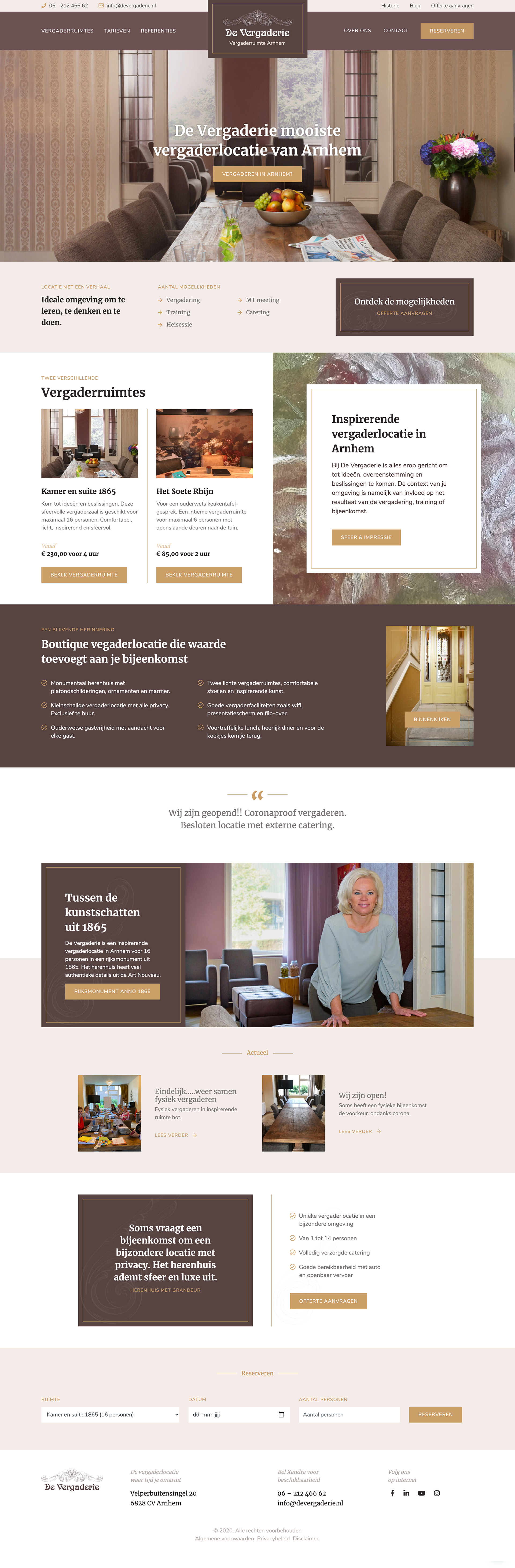 Ontwerp pagina template "historie" De Vergaderie in Arnhem